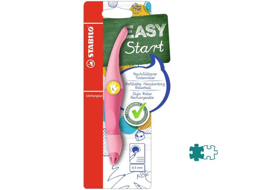 Ergonomicky tvarovaný roller, ktorý píše ako plniace pero. Prevedenie pre ľavákov. Vhodný pre deti, ktoré sa učia písať a školákov od 6 rokov. Uvoľnené držanie pomáha proti únave svalstva ruky a bolestiam pri písaní. Úchyt z nekĺzavého materiálu, nový hrot s každou novou náplňou. Plnený zmizíkovateľným atramentom modrej farby.Dodatočné parametre