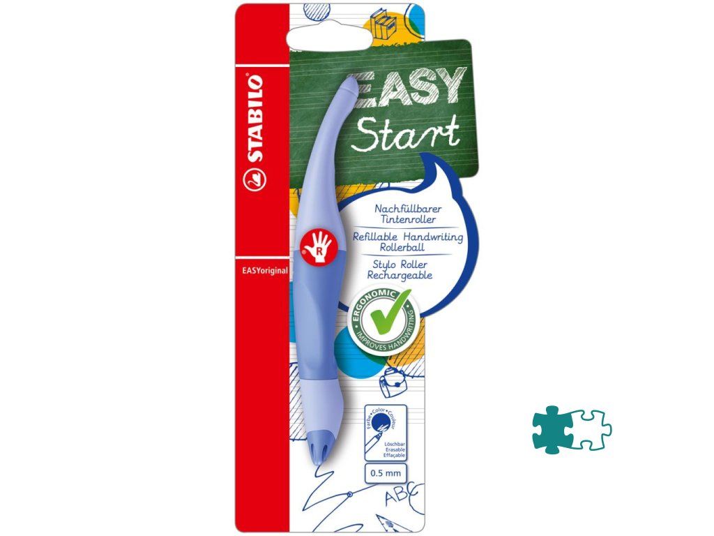 Ergonomicky tvarovaný roller, ktorý píše ako plniace pero. Prevedenie pre pravákov. Vhodný pre deti, ktoré sa učia písať a školákov od 6 rokov. Uvoľnené držanie pomáha proti únave svalstva ruky a bolestiam pri písaní. Úchyt z nekĺzavého materiálu, nový hrot s každou novou náplňou. Plnený zmizíkovateľným atramentom modrej farby.Dodatočné parametre