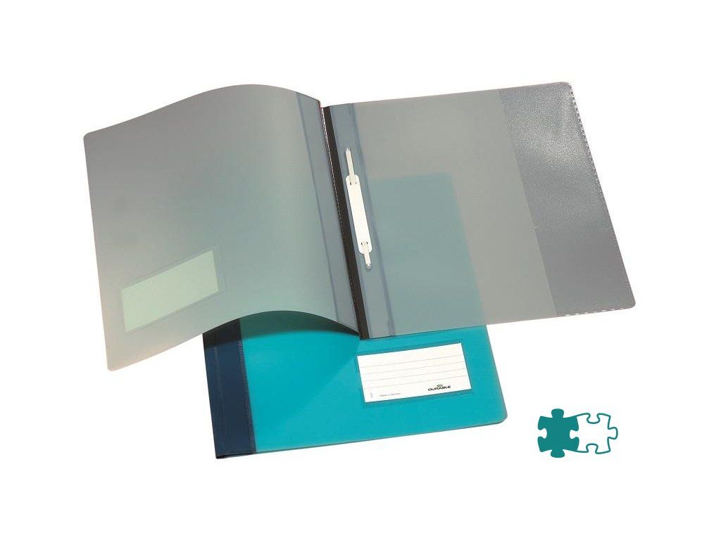 Elegantný rýchloviazač z farebného PVC a plastovým zakladacím viazačom. Priehľadné vrecko vo formáte vizitky (90 x 57 mm) na prednom obale a vnútorné vrecko na zadnej strane. Extra široký, vhodný aj na euroobaly. Väčšie balenie 25 ks. V kombinácii so zakladacím pásikom obj. kód DU2996 02 je možné archivovať rýchloviazač v zakladači.Farba: modrá