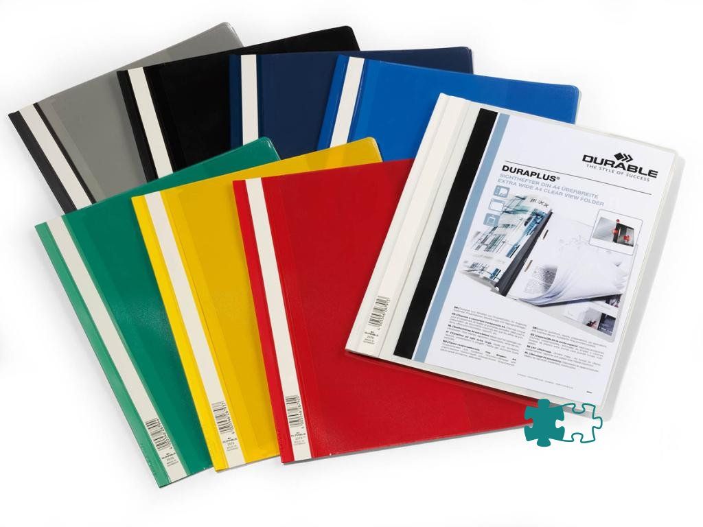 Priehľadný zakladač s farebným zadným krytomArchivujte dierované dokumenty pomocou zakladacieho mechanizmu