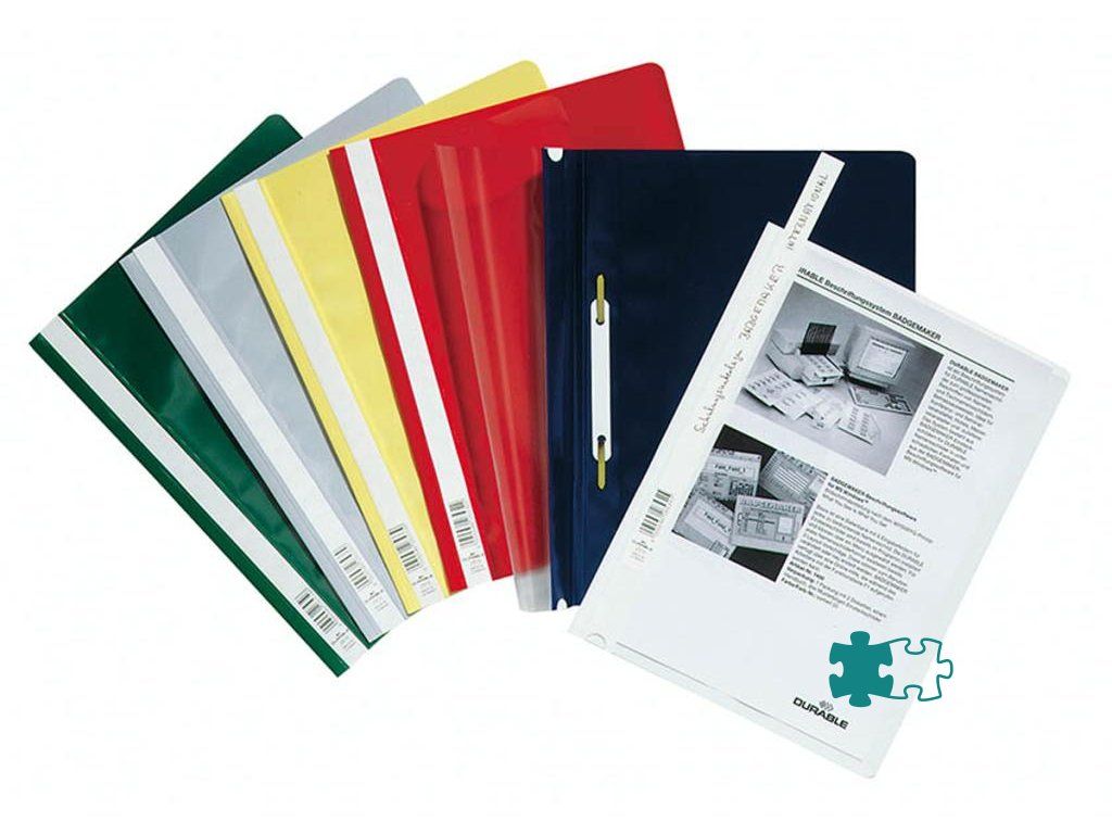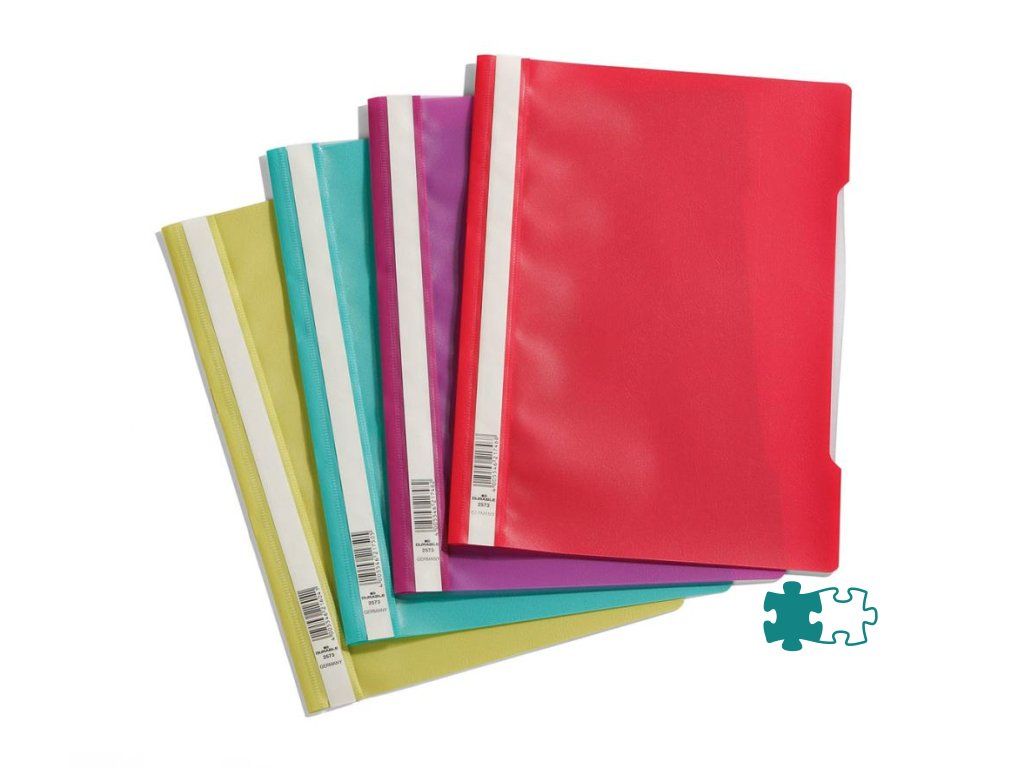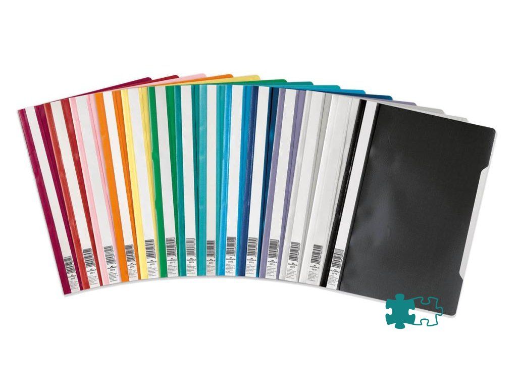 Priehľadný zakladač s farebným zadným krytomArchivujte dierované dokumenty pomocou zakladacieho mechanizmu