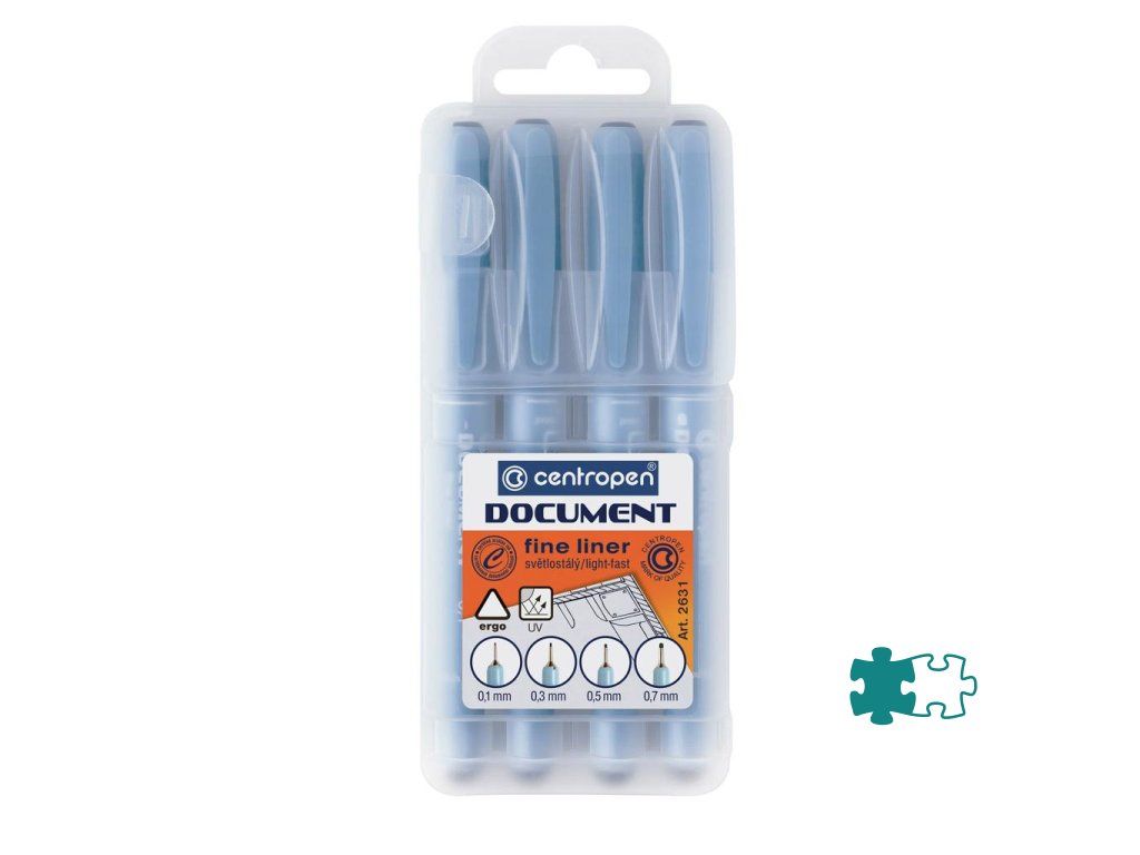 Špeciálne jednorazové grafické linery na vyťahovanie čiar, skicovanie a kreslenie. Dokumentačný atrament svetlostály a vodeodolný. Dĺžka stopy 500 až 600 m. Dodávané v sade 4 ks s hrotmi 0,1mm, 0,3 mm, 0,5 mm a 0,7 mm.Farba: sada 4 ks