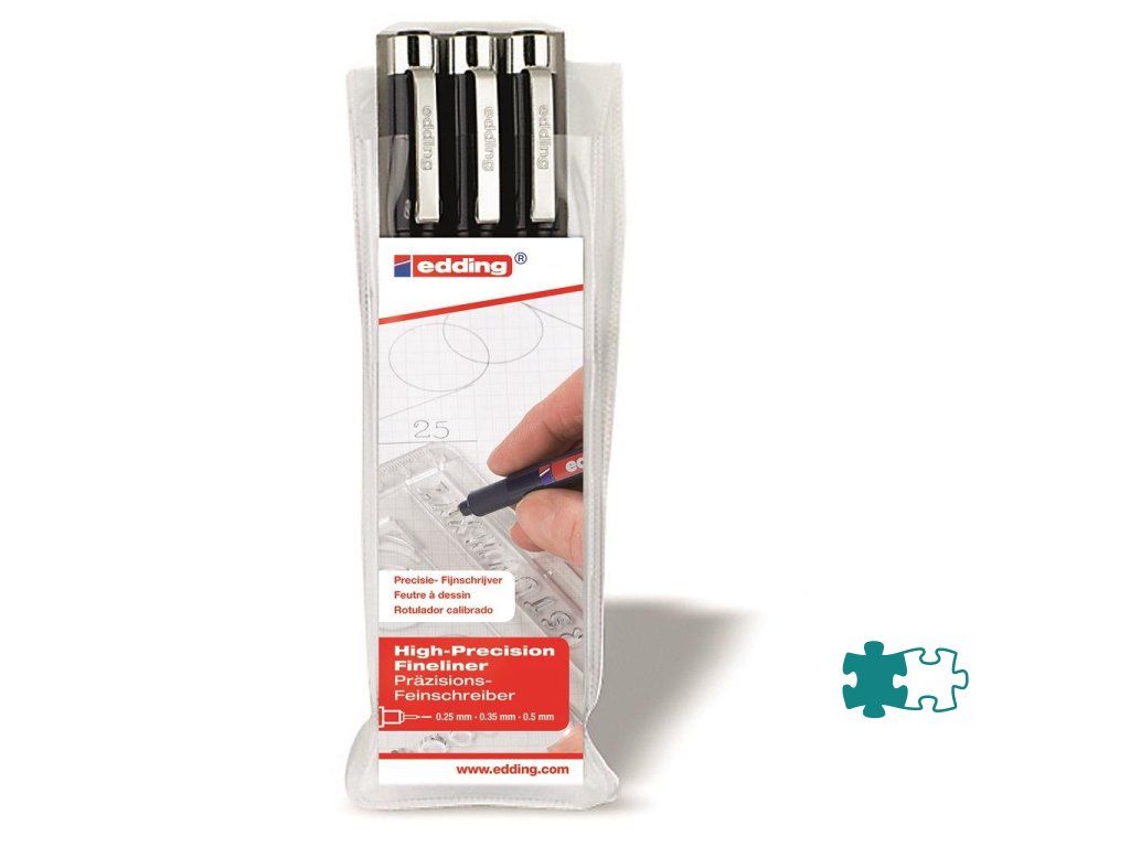 Špeciálny jednorazový popisovač s vláknitým hrotom, kovovým klipom a uzáverom je určený na kreslenie, náčrty, technické kreslenie a pod. Plnený vo vode rozpustným atramentom, ktorý na svetle nebledne. Farba čierna. Balenie sada 3 ks po jednom v hrúbkach 0,1 / 0,3 / 0,5 mm.Farba: čierna