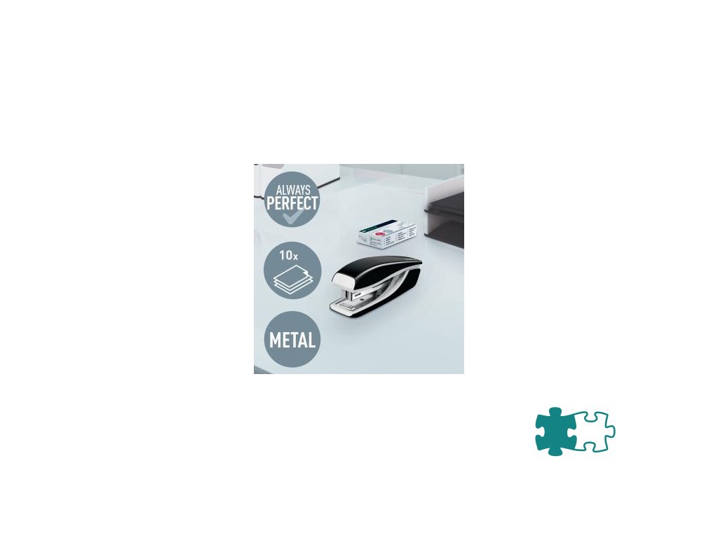 Minisúprava v moderných farbách. Malé a kompaktné rozmery. Kapacita 10 hárkov. Celokovová minizošívačka a dierovačka na použitie v kancelárii aj na cestách. Zošívačka s otvorením ramena o 180° na nástenkové zošívanie. Použite spinky Leitz Power Performance P2, č. 10, jedna škatuľka spiniek je súčasťou balenia. Dierovačka má príložník s kontrastnou potlačou jednotlivých formátov, rámček na jasné určenie formátu. Balenie v blistri. Farba čierna.Dodatočné parametre