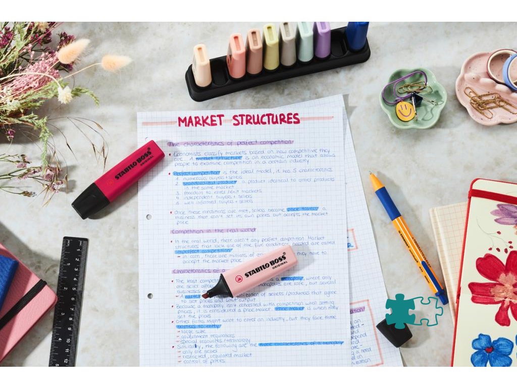 Zvýrazňovač STABILO BOSS ORIGINAL NatureCOLORS Wildflower ponúka moderné odtiene a jemný zvýraznený efekt, ktorý oživí akýkoľvek dokument alebo študijný materiál. Štyri odtiene - ultramarínová, bordová, šedofialová a púdrová ružová - sú ideálne pre každého, kto chce do svojej písacej súpravy priniesť módne farby z interiéru a módneho dizajnu. Vďaka technológii STABILO Anti-Dry-Out zostáva tento kvalitný zvýrazňovač použiteľný až 4 hodiny bez vysychania, takže môžete bez obáv melírovať aj pri dlhšej práci. Univerzálny klinový hrot umožňuje šírku čiary 2 mm alebo 5 mm, čo je ideálne na zvýraznenie aj jemné čiary. Či už sa pripravujete na skúšky alebo si organizujete poznámky, tento zvýrazňovač je nepostrádateľným nástrojom pre profesionálnu prácu aj kreatívne činnosti, ako je journaling alebo hand lettering.Dodatočné parametre