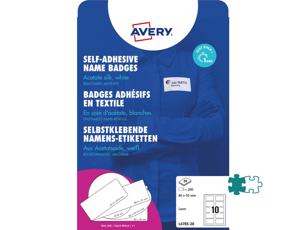 Samolepiace menovky Avery na textil 80x50mm, materiál acetátový hodváb