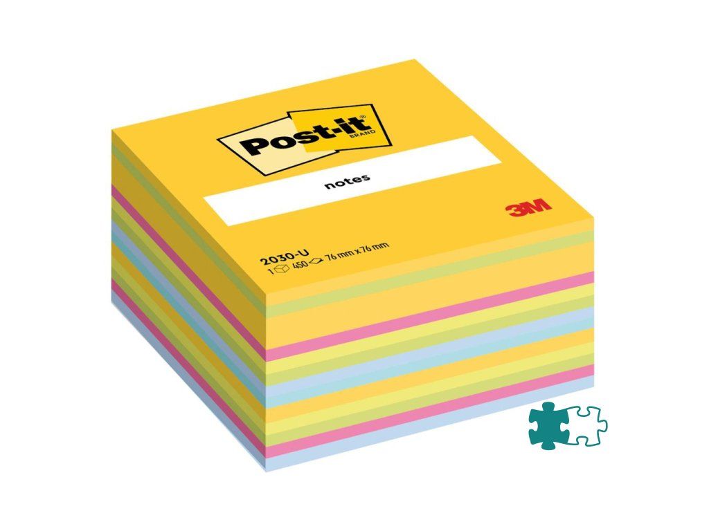 Post‑it® lístky v kocke v mice farieb. 450 lístkov v jednej kocke. Rozmery 76 × 76 mm.- Post-it® kocky bločkov sa dodávajú v najrôznejších farbách a sú ideálne pre používateľov, ktorí nešetria slovami.
