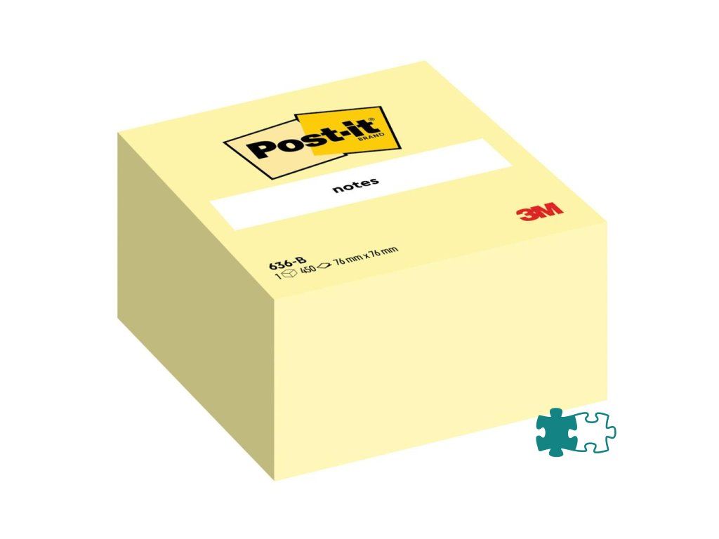 Post‑it® žltá kocka. 450 lístkov, ktoré držia na väčšine povrchov a nezanechavajú žiadne stopy po lepidle. Rozmery 76 x76 mm.- Post-it® kocky bločkov Canary Yellow™ sa dodávajú v najrôznejších farbách a sú ideálne pre používateľov, ktorí nešetria slovami.