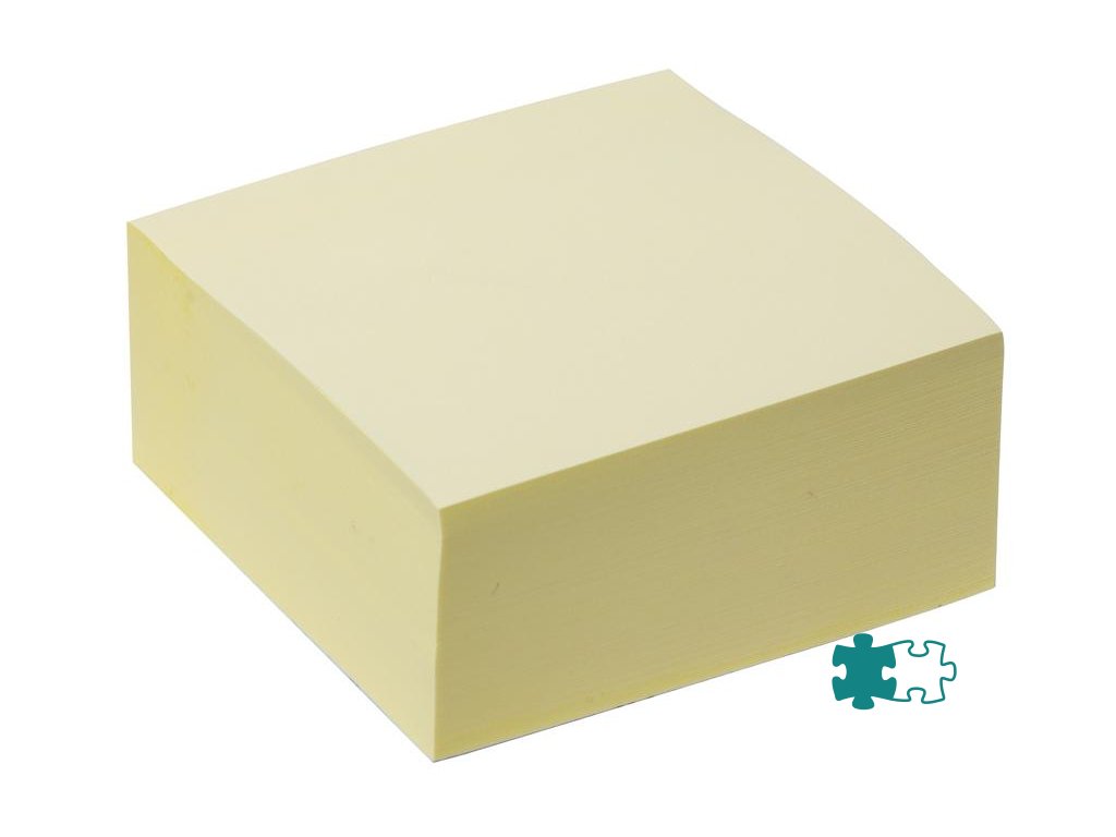 Žlté samolepiace lístky v tvare kocky, ktoré držia na väčšine povrchov, dajú sa odlepiť bez poškodenia povrchu a znova nalepiť. Rozmery 76 x76 mm. Počet lístkov 400.Certifikát FSC.