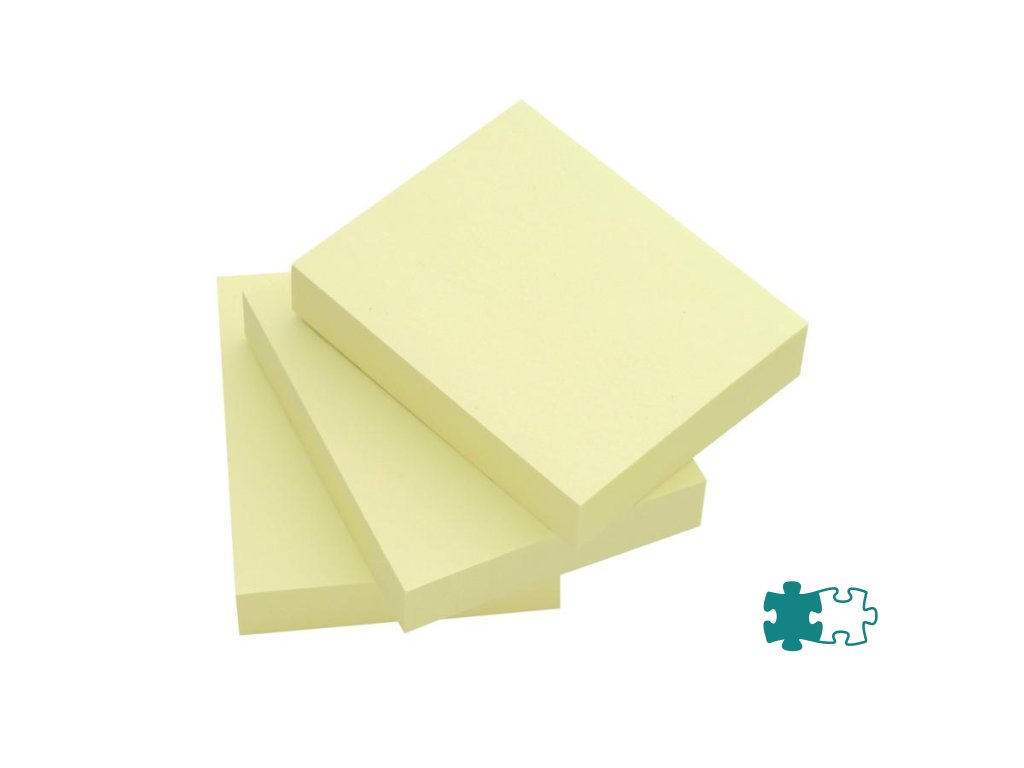 Samolepiace poznámkové bločky v žltej farbe. Rozmery 38 × 51 mm. Počet lístkov 3 x100.Dodatočné parametre
