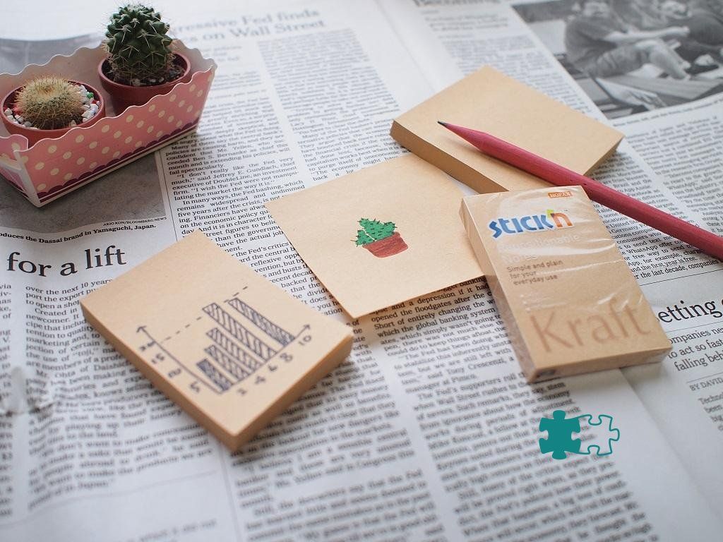 Samolepiace bločky z prírodného hnedého papiera. Sú ľahko odlepiteľné, po odlepení nezanechávajú žiadnu stopu. Väčšie balenie 12 ks.. Rozmery 76 × 51 mm. Počet lístkov 100. Farba prírodná hnedá.Dodatočné parametre