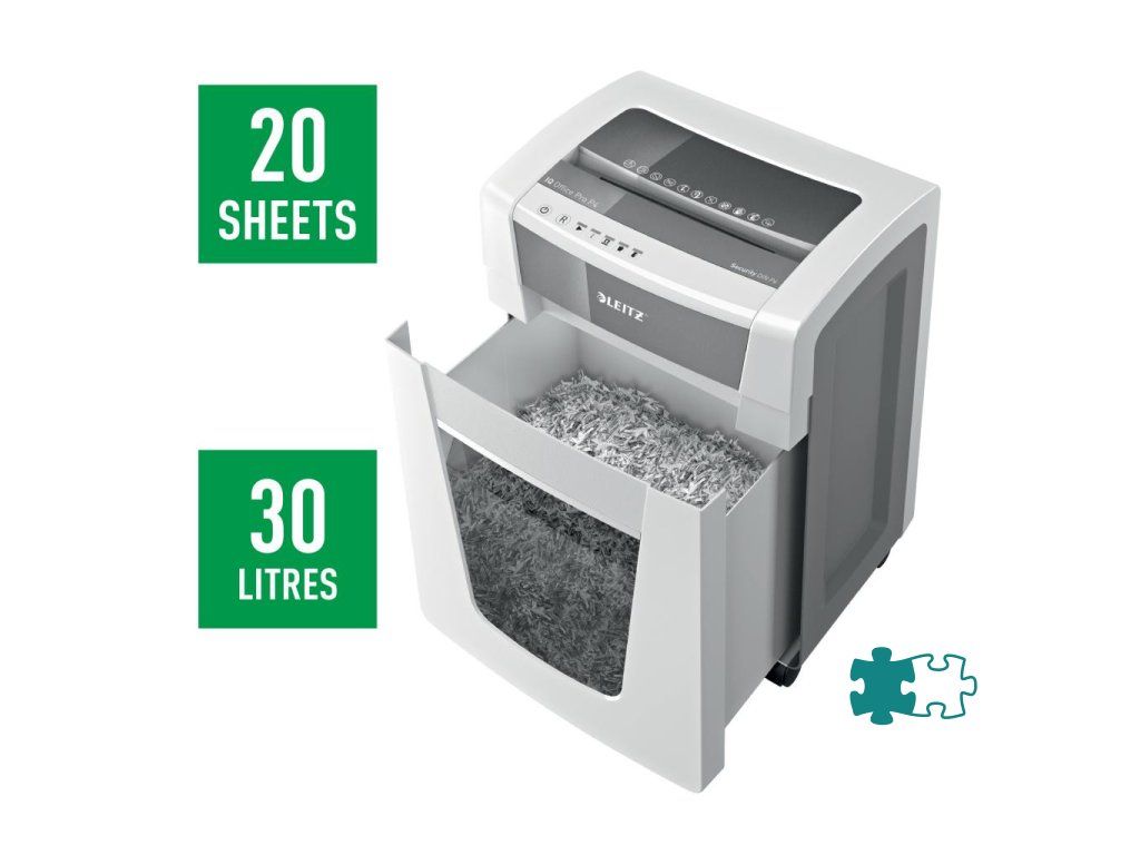 Nový skartovač Leitz IQ Office Pro ponúka moderný štýlový vzhľad, vysokú výkonnosť a bezpečnosť. Stupeň utajenia DIN P4 pre vysoké zabezpečenie skartovaných dokumentov. Perfektné bezproblémové skartovanie, ideálne na použitie vo veľkých kanceláriách. Excelentný výkon s technológiou proti zaseknutiu papiera, tichý chod a dlhý čas, po ktorý je skartovač schopný skartovať. Skartuje až 20 hárkov A4 krížovým rezom do veľkého koša s objemom 30 l. Jednoduché ovládanie pomocou dotykových ovládacích prvkov. Dlhý skartovací cyklus pre až 4 hodiny dlhé neprerušované skartovanie.