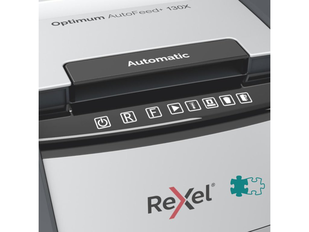 Skartovačka Optimum AutoFeed 130X automaticky skartuje až 130 listov papiera A4 (80 g/m2) krížovým rezom P-4 (4 × 28 mm). Táto skartovačka s automatickým podávaním je sofistikovaný kancelársky drvič s výsuvným košom s objemom 44 l. Nie je potrebné ručne vkladať papier alebo vopred odstraňovať svorky a kancelárske sponky, táto automatická skartovačka papiera urobí všetko za vás.Automatické podávanie až 130 hárkov papiera formátu A4 (80 g/m2) naraz. Otvor na manuálne plnenie až po 8 hárkoch.