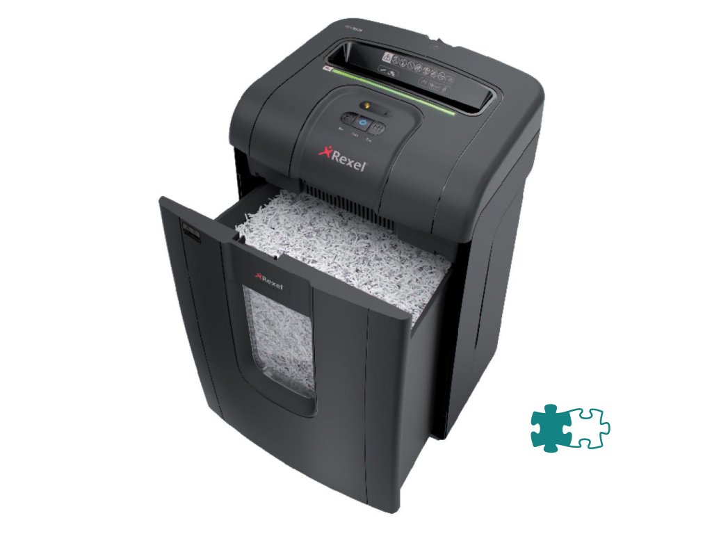 Bez uviaznutia, bez ťažkostí, bez neporiadku! Skartovačka RSX1834 s technológiou Mercury™ Jam Free s nepretržitým snímaním skartuje až 18 listov (80 g/m2) na krížovo rozrezané čiastočky 4 × 40 mm (utajenie typ 4). Má odpadový kôš s objemom 34 litrov.