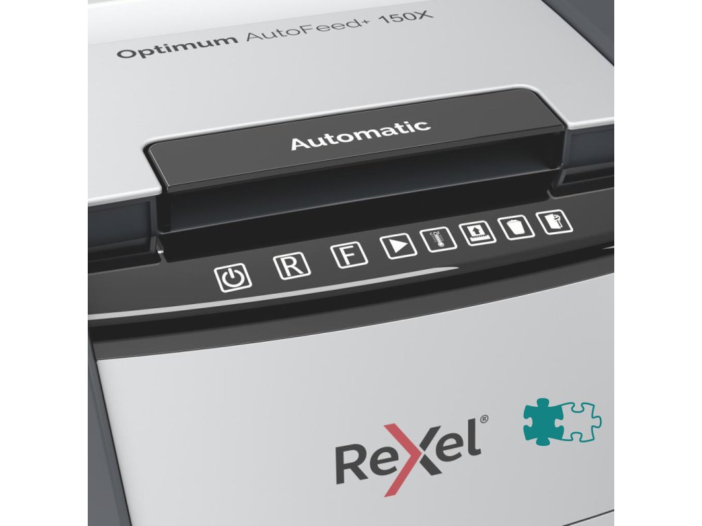 Skartovačka Optimum AutoFeed 150X automaticky skartuje až 150 listov papiera A4 (80 g/m2) krížovým rezom P-4 (4 × 28 mm). Táto skartovačka s automatickým podávaním je sofistikovaný kancelársky drvič s výsuvným košom s objemom 44 l. Nie je potrebné ručne vkladať papier alebo vopred odstraňovať svorky a kancelárske sponky, táto automatická skartovačka papiera urobí všetko za vás.