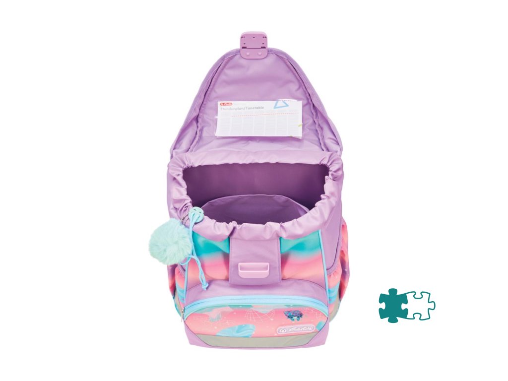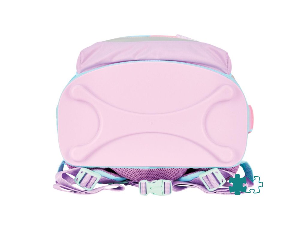 Školská taška bez výbavy, s anatomicky tvarovaným polstrovaným chrbtom, širokými nastaviteľnými ramennými popruhmi, hrudným popruhom, predným vreckom, dvomi bočnými vreckami, reflexnými prvkami Oralite, 1x aplikácia na suchý zips, 1 x dekoratívny prvok. Hmotnosť 750 g, objem 15 l, rozmery: 36 x 28 x 21 cm.Dodatočné parametre