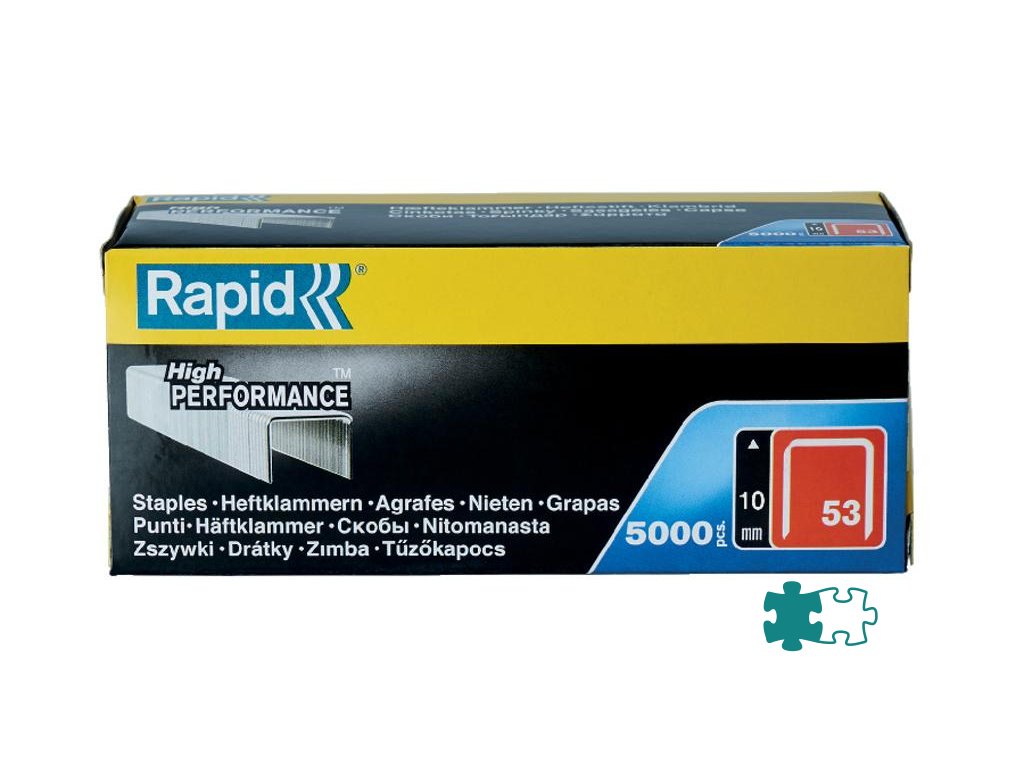 Vysokokvalitné tenké spony z pevnej ocele pre sponkovačky Rapid.Pozinkovaný drôt. Tenký drôt pre takmer neviditeľný výsledok. Silný drôt pre vysoký výkon. Presne zabrúsené hroty pre maximálnu penetráciu. Použitie: tkaniny, štítky, pripevňovanie dekorácií atď. 5 000 ks.. Dĺžka nožičky 10 mm. Do sponkovačky Hobby dual, R53, R253, R453, MS4.1, Compacta, R353, MS610, MS853, ALU 753, ESN530, R553, Hobby Electric, PS6-16