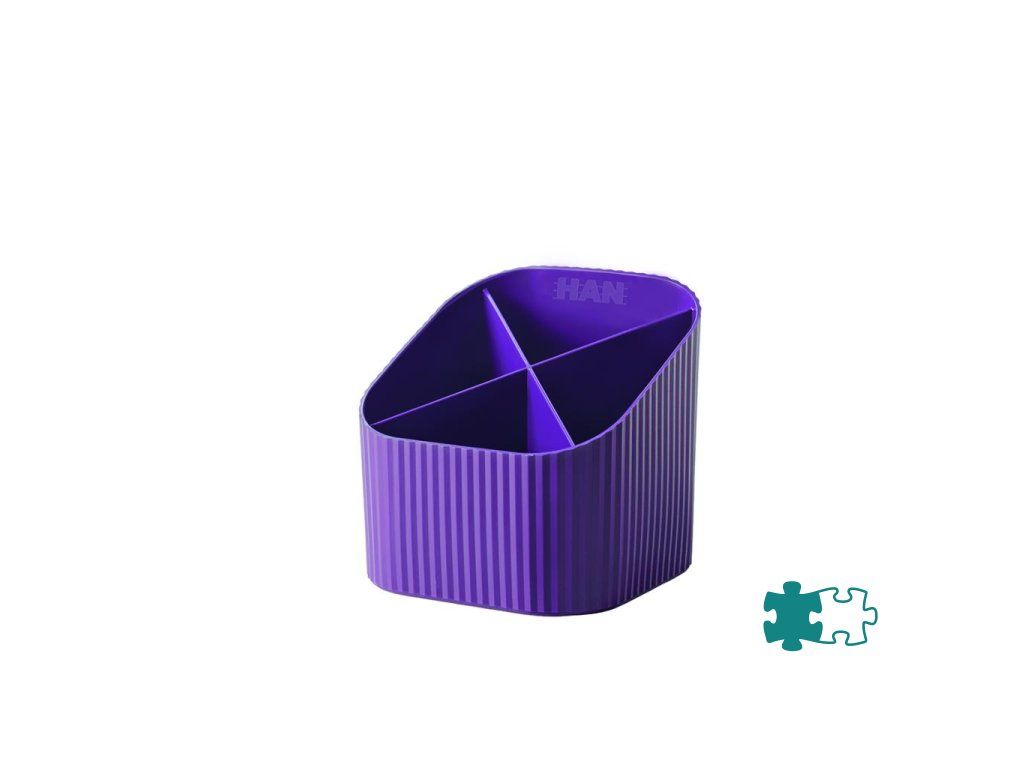 Stojan so 4 priehradkami v modernom dizajne a trendových farbách. Materiál vysokokvalitný PP. Rozmery 111 × 121 × 106 mm. Farba fialová.Dodatočné parametre