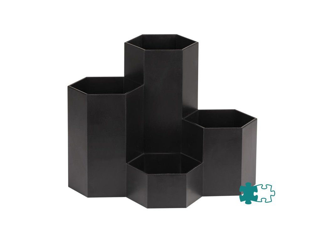 Stojan na perá so šesťuholníkovými trubicami je vyrobený z mimoriadne odolného a nárazuvzdorného polypropylénu. Vďaka tvaru včelieho plástu ho možno zoskupiť, aby sa ušetrilo miesto. 4 trubice, usporiadané v rôznych výškach, ponúkajú voľný priestor na pravítka, štetce, nožnice, perá a samozrejme aj na menšie predmety na stole, ako sú strúhadlá a gumy.Dodatočné parametre