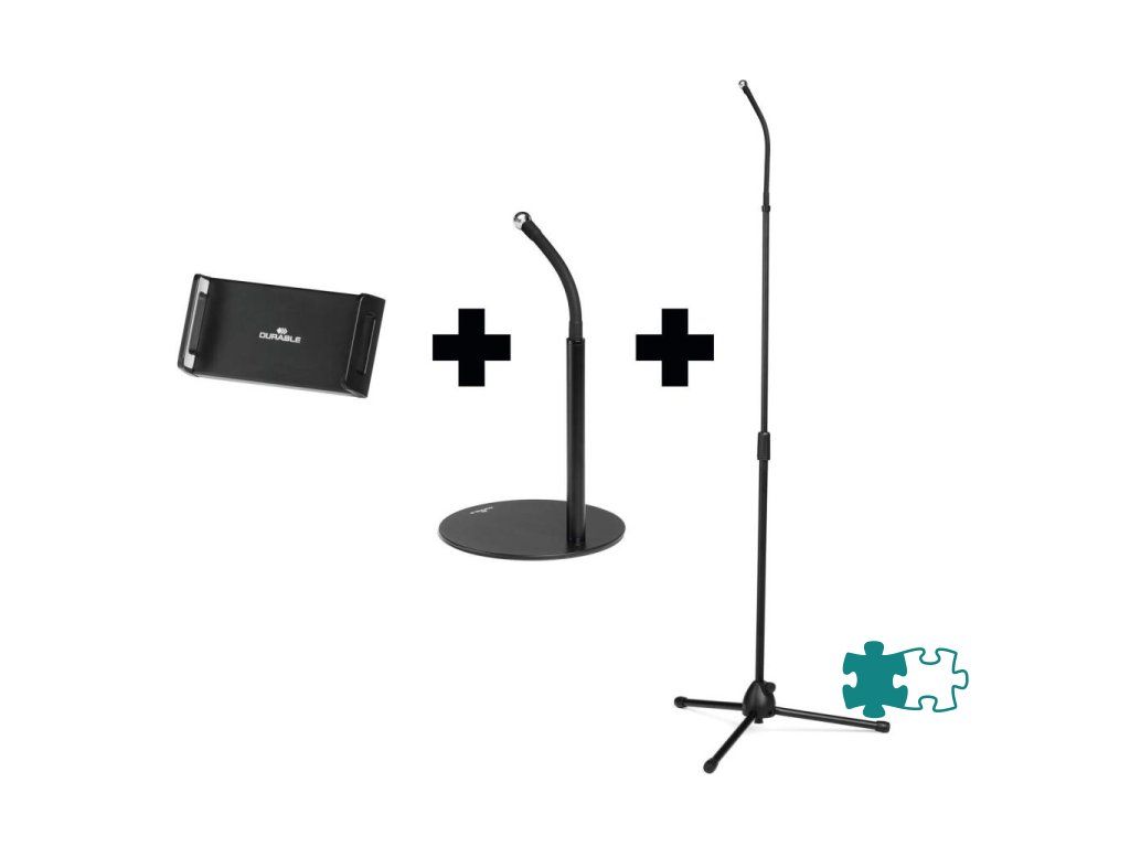• Stojan na stôl a podlahu s držiakom na tablet a mobilný telefón, vybavený flexibilným ramenom a guľovým kĺbom