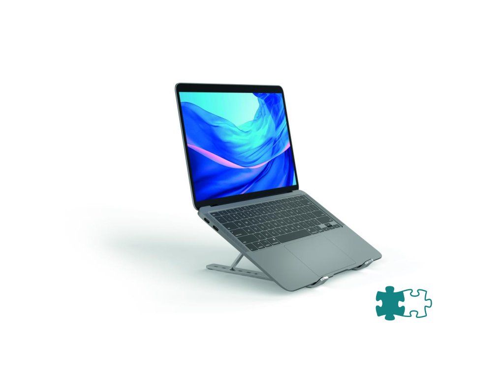 Univerzálny, nastaviteľný stojan pre notebooky a tablety do 15”. Uľahčuje prácu vďaka ergonomickej a flexibilnej nastaviteľnosti výšky a uhla sklonu. Protišmykové gumené podložky chránia zariadenie pred poškriabaním. Priestorovo úsporný, skladací a ľahko prenosný. Výškovo nastaviteľný v 6 jednoduchých krokoch. Maximálna nosnosť: 5 kg. Súčasťou balenia je priaktická cestovná taška.Dodatočné parametre