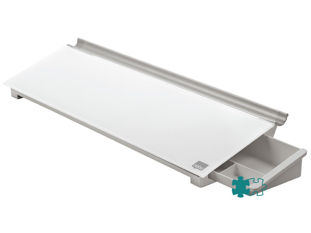 Sklenená stolová podložka je unikátny doplnok na stôl na písanie poznámok a odkazov. Bezrámčekový dizajn a sklenený povrch tabule ponúka najvyššiu odolnosť proti šmuhám od atramentu a škrabancom. Písacia plocha je vždy poruke a písanie poznámok je tak veľmi pohodlné. Výrobok sa perfektne hodí do priestoru za klávesnicou. Skrytý úložný priestor vnútri vám pomôže si udržať čistý pracovný stôl. Dodávané s minipopisovačom Nobo s hubkou na viečku.Dodatočné parametre