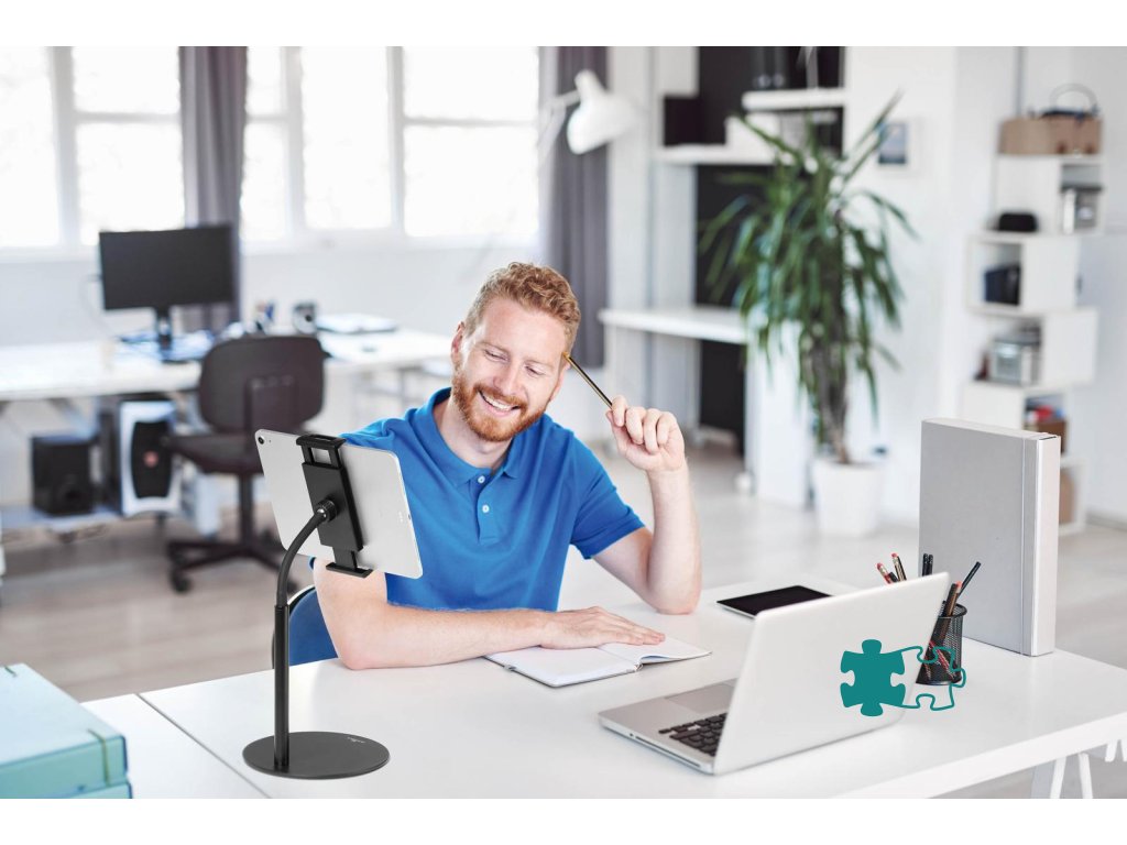 Stojan na stôl pre tablety a mobilné telefóny od 4,7-13`. Plynulá otočnosť a nastavenie výšky pomocou flexibilného ramena.