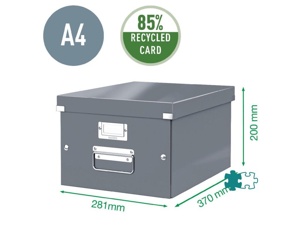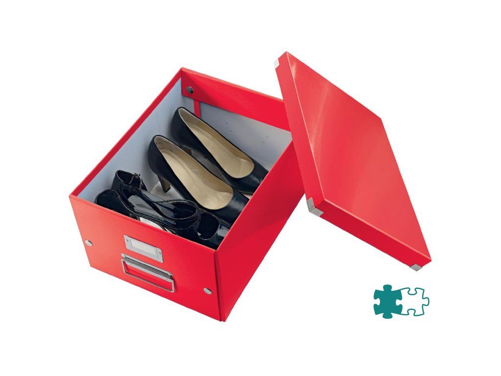Archivačná krabica s vekom vo výrazných farbách WOW. Pevné a stabilné prevedenie. Materiál silný drevnatý kartón potiahnutý laminom. Rámik na štítok, vystužené rohy krabice a spojovacie cvoky vyrobené z kovu. Inteligentná skladacia konštrukcia - rýchle a jednoduché zloženie bez nutnosti použitia skrutiek a opätovné rozloženie, keď krabice práve nepoužívate. Dodávané rozložené. Väčšie balenie 6 ks. Univerzálna stredná archivačná krabica na uloženie dokumentov formátu A4, dosiek, obálok, katalógov a pod. Robustné kovové úchyty na jednoduchý prenos. Rozmery281 x 200 x 370 mm. Farba červená.