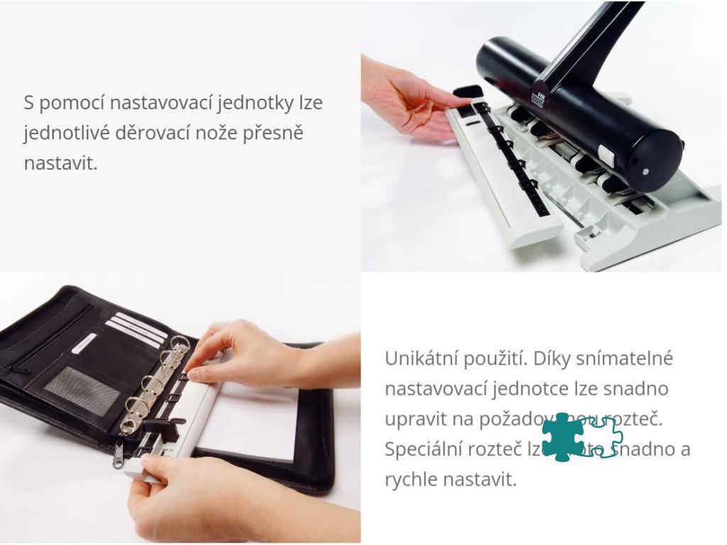 Ručná dierovačka, vybavená štyrmi posuvnými dierovacími hlavami s variabilným nastavením ľubovoľnej kombinácie dierovania a aretáciou horného dielu na ľahké uloženie. Možnosť dokúpenia páru ďalších dierovacích hláv na predierovanie maximálneho počtu 6 otvorov (6mm), obj.kód NO250478. Hmotnosť 2280 g. Záruka 10 rokov.Farba: čierna/sivá