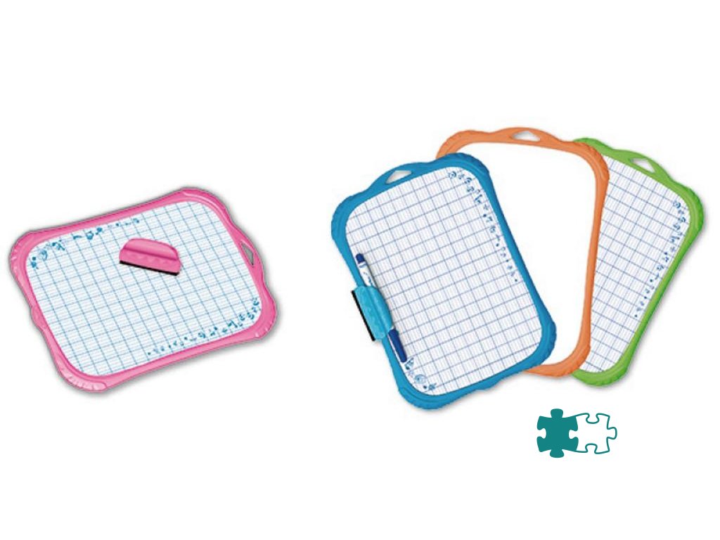 Tabuľka KEYROAD Mini na sucho stierateľná, obojstranná (hladká/kockovaná). Protipráskavý náter, flexi, umývateľný, farebné gumené rámy. Fixka a mini hubka súčasťou balenia. Závesná konzola, rozmer: 205 x 287 x 17mm. Farba dosky: biela, farba rámu: mix farieb.Dodatočné parametre