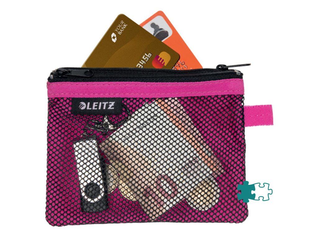 Vysokokvalitné puzdrá s 2 priehradkami na organizáciu a ochranu menších osobných vecí, ako sú občiansky preukaz alebo platobné karty, vnútri nepriehľadnej priehradky a slúchadiel alebo káblov vnútri sieťovanej priehradky. Farba ružová.`Súčasť radu Leitz WOW - široký sortiment výrobkov na organizáciu práce v kancelárii aj na cestách v nápadných a štýlových farbách