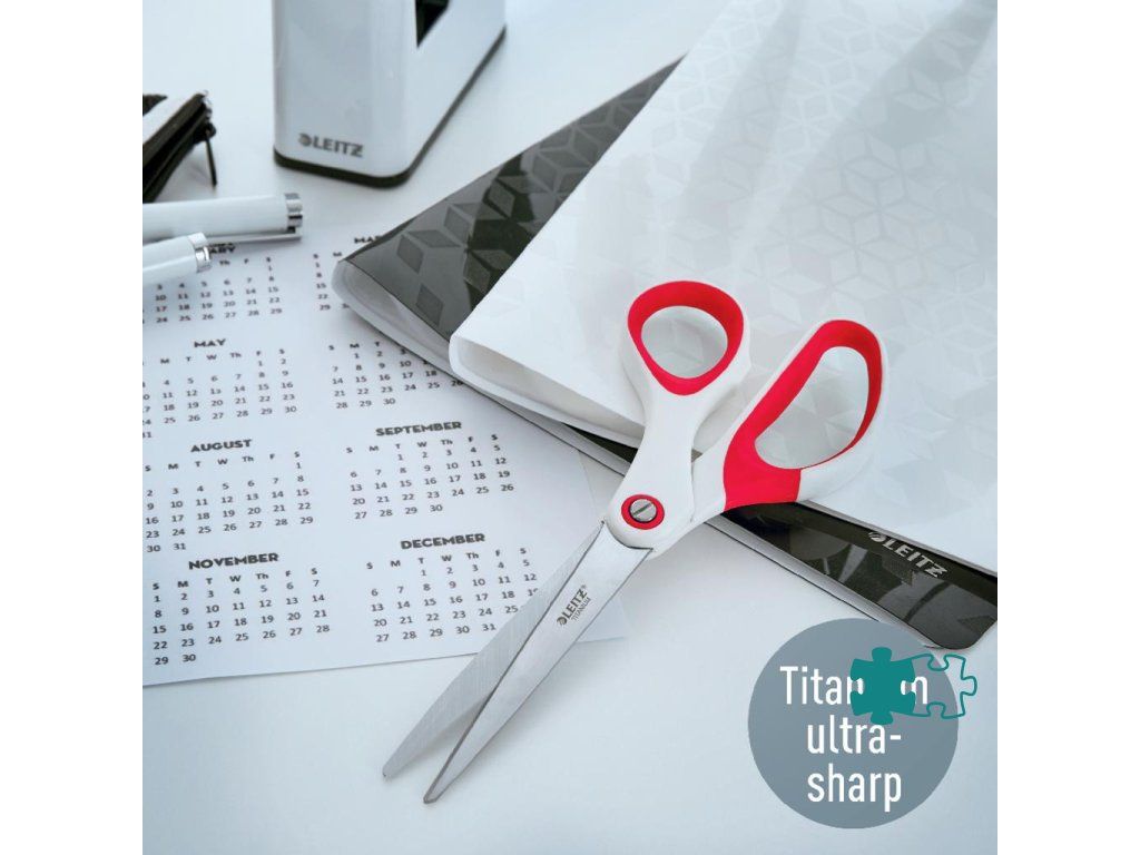 Titánové kancelárske nožnice Leitz WOW 205 mm červené