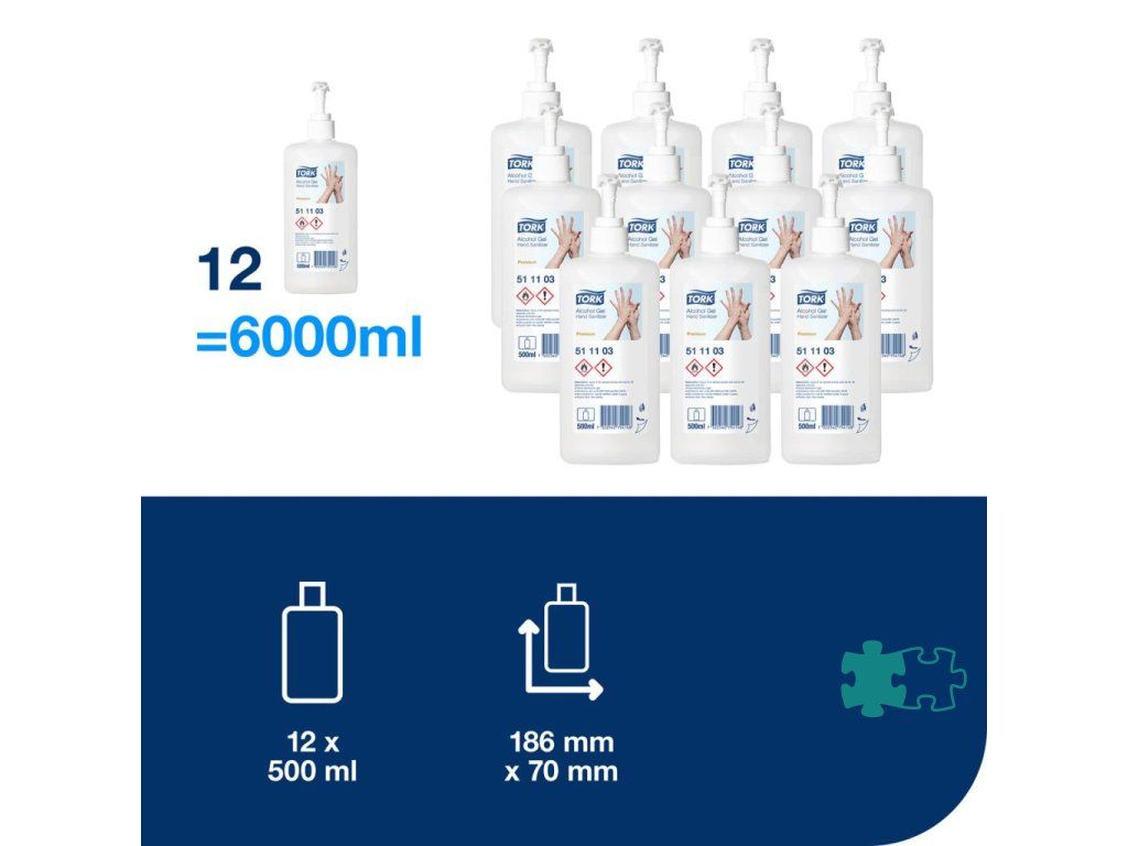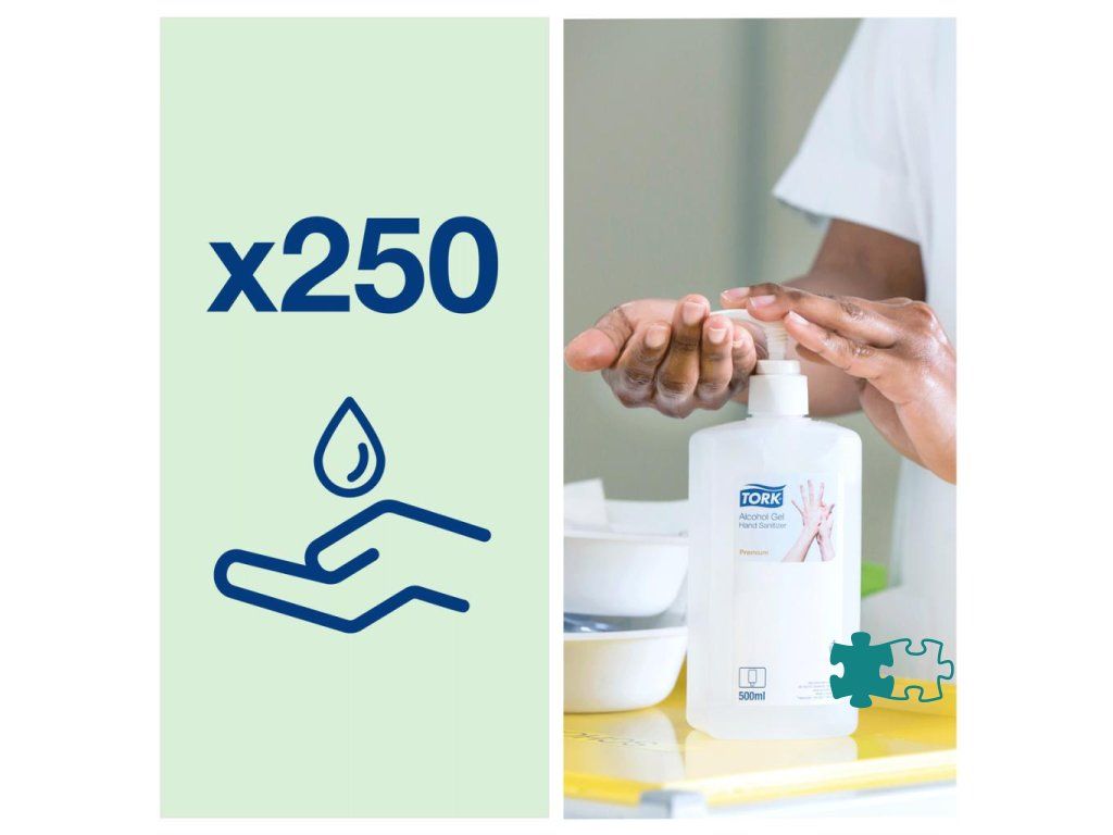 Tork Alcohol gélový dezinfekčný prostriedok s 80 % obsahom denaturovaného liehu efektívne ničí mikroorganizmy a pomáha tak predísť šíreniu infekcií. Efektívny voči rôznym organizmom vrátane obalených vírusov, norovírusov a rotavírusov. Ideálny na každodennú hygienu rúk aj v zdravotníctve. Vhodné pre všetky Tork zásobníky na mydlá a dezinfekčné prostriedky (S4). Účinné voči rôznym problémovým organizmom - spĺňa normy EN1500, EN 12791 a EN14476 (všetky obalené vírusy, ako sú HIV, SARS, korona, HBV, HCV, chrípka H1N1, H5N1 atď. a aj rotavírus a norovírus). Dermatologicky testované zloženie bez lepkavých zvyškov.Alkoholová gélová dezinfekcia na ruky Tork je ideálnym riešením pre čistenie rúk, keď nie je k dispozícii voda