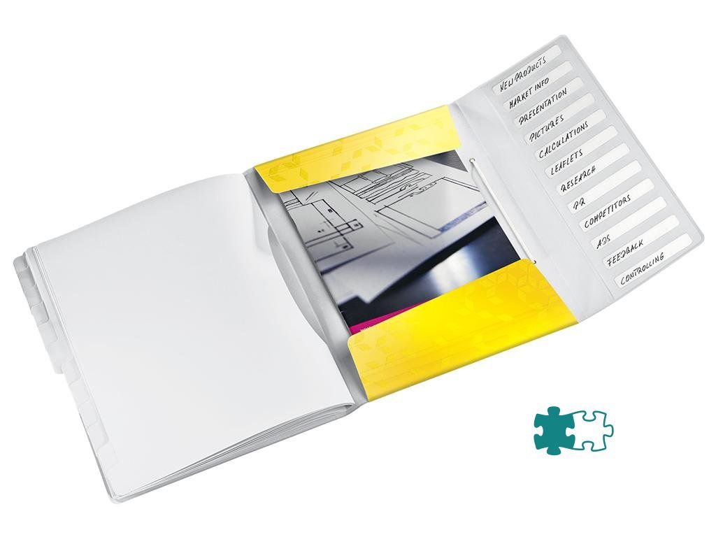 Nepriehľadné triediace knihy z polypropylénu s gumičkou na organizáciu a triedenie dokumentov formátu A4. Trojchlopňové obaly na zadnej strane na uloženie voľných listov, obal na register v zadnej chlopni. V dizajne rady WOW v žiarivých farbách. Kapacita 200 listov. Prevedenie 12 oddielov. Väčšie balenie 4 ks. Farba žltá.Dodatočné parametre