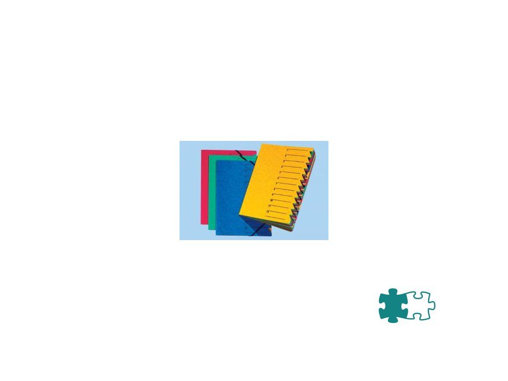 Triediaca zložka s 12 oddielmi, farebnými kartónovými listami a indexom, uzatvárateľná gumičkou. Možnosť popisu obsahu na titulnej strane.Farba vrchného obalu: zelená