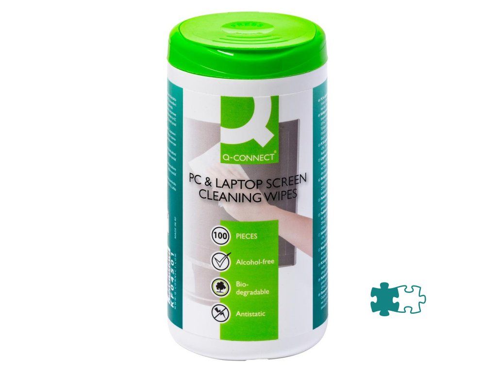 Mokré utierky balené v dóze vhodné na notebooky, LCD, TFT a plazmové obrazovky. Bez obsahu alkoholu, nehorľavé. V balení 100 útržkov.Biologicky odburateľný.