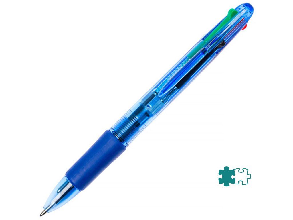 Jednorazové 4‑farebné pero so stláčacím mechanizmom a klipom s gumenou úchytovou zónou.Dodatočné parametre