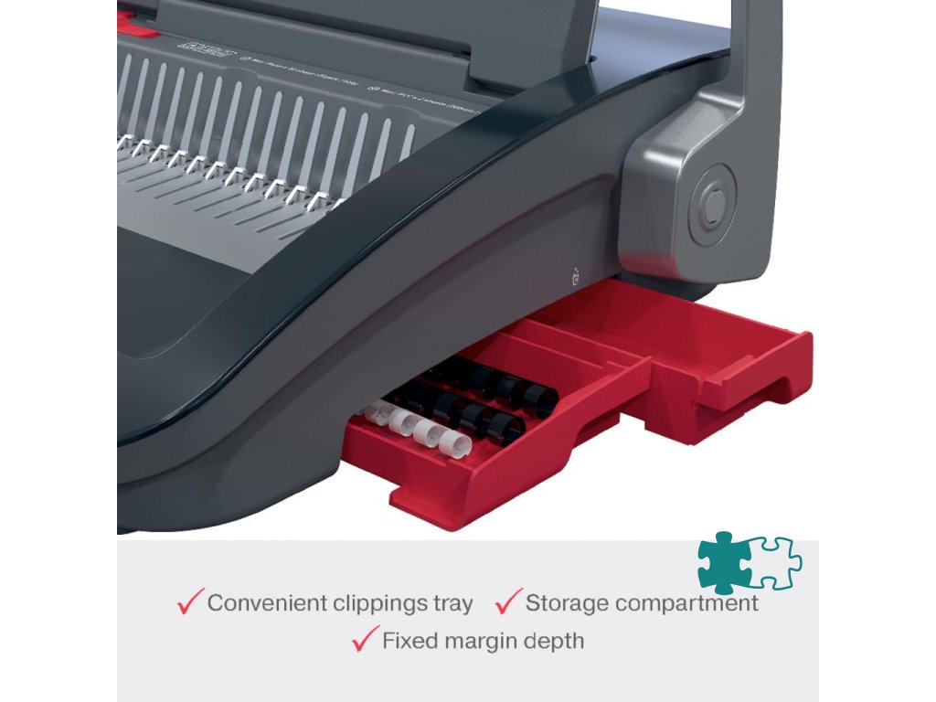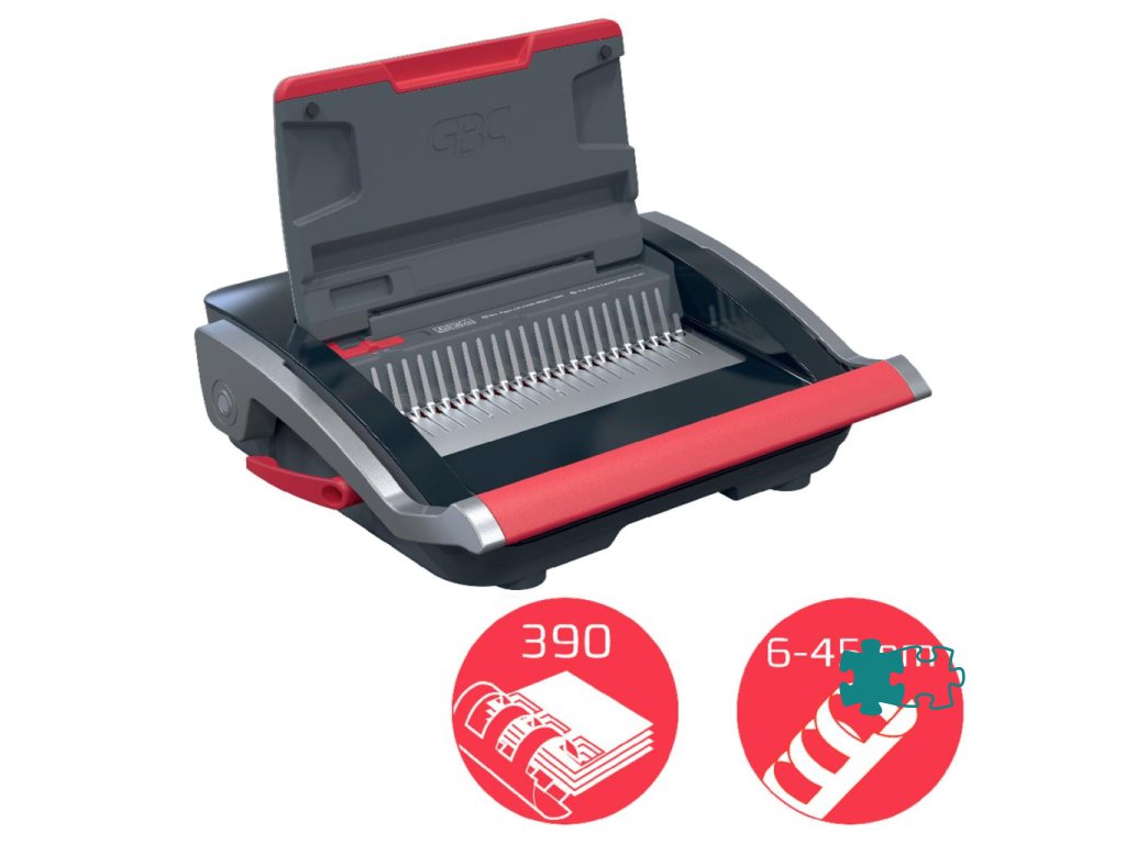 • spoľahlivý a kompaktný ručný viazač s plastovými chrbtami, navrhnutý na zdieľané použitie v kancelárskom a školskom prostredí s bežnými nárokmi na objem väzby• presekne až 25 listov papiera s gramážou 80 g/m² formátu A5/A4 naraz a efektívne zviaže až 390 listov naraz pomocou 45 mm chrbtov