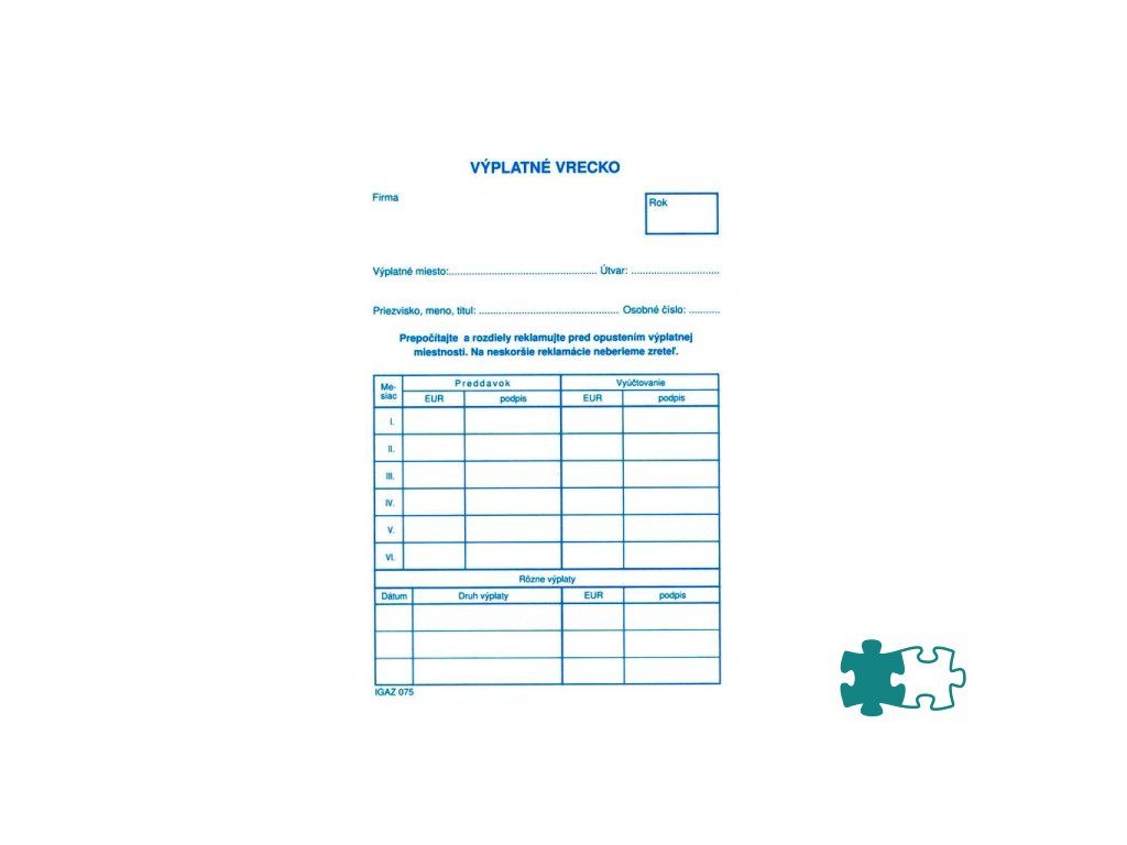 Tlačivo : Výplatné vrecko formát C6.Dodatočné parametre