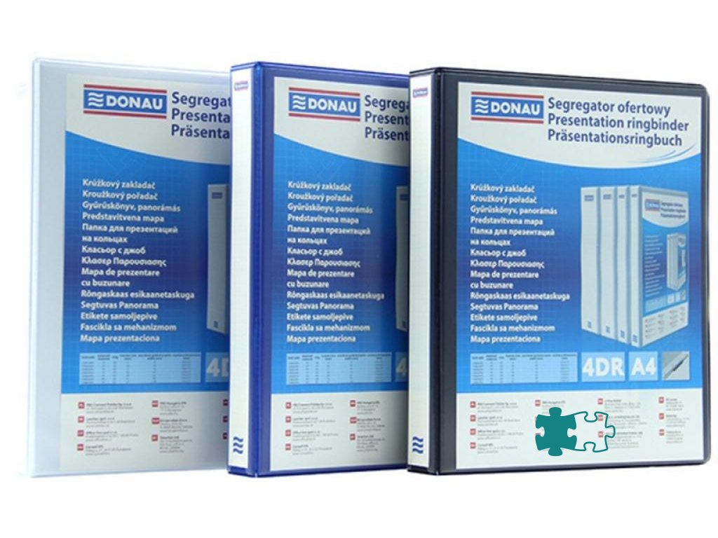 Zakladač 4-krúžkový prezentačný DONAU kartón/PP, A4/4RD/16, biely