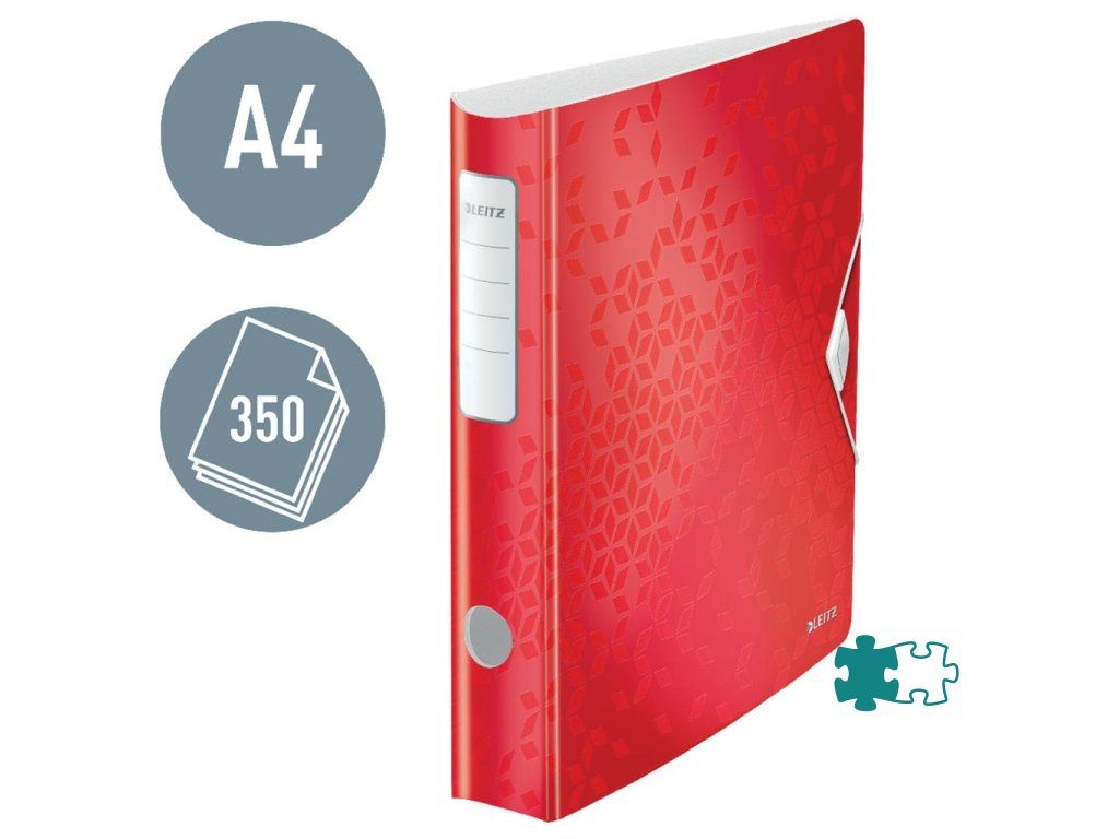 Mobilný zakladač v žiarivej WOW farbe s dvojfarebným efektom na organizáciu dokumentov v kancelárii i na cestách. Ľahký materiál a ergonomický dizajn. Dvojvrstvový PP materiál vyplnený penou z tzv. Polyfoamu, ktorý je extrémne odolný a ľahký. Unikátna páková mechanika s otvorením o 180 ° umožňuje o 50 % širšie otvorenie a o 20 % rýchlejšiu prácu so zakladačom. Uzatváranie na gumičku. Vnútorný obal na voľné papiere, CD/ DVD a vizitky. Zaoblený chrbát a praktická úchytka na pero. Kapacita 350 listov A4 (80 g/ m²). Chrbát 6,5 cm. Farba červená.Dodatočné parametre