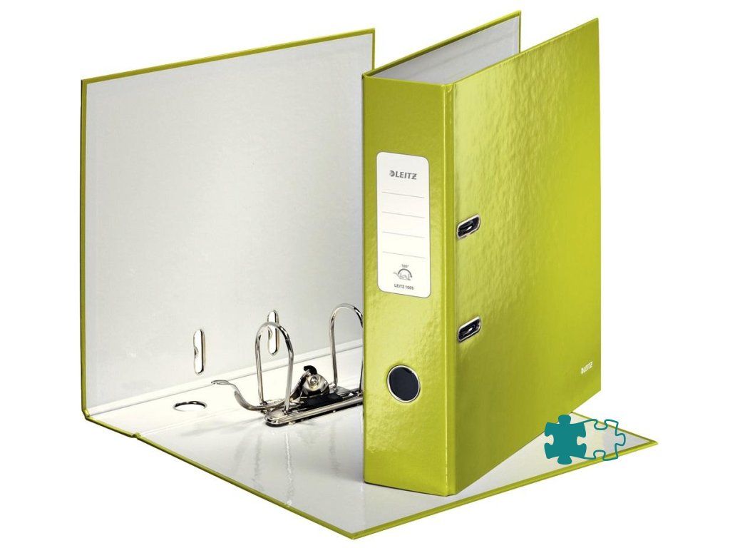 Pákový zakladač rady WOW v žiarivej metalickej zelenej farbe s dvojfarebným efektom. Unikátna patentovaná mechanika Leitz 180° poskytuje širšie otvorenie, možnosť zakladania väčšieho množstva papierov a o 20 % rýchlejšiu prácu so zakladačom. Vybavený chrbtovým krúžkom, rado zámkom a samolepiacim chrbtovým štítkom, ktorý môže byť v prípade potreby odstránený. Šírka chrbta 8 cm, kapacita 600 listov. Väčšie balenie 10 ks.