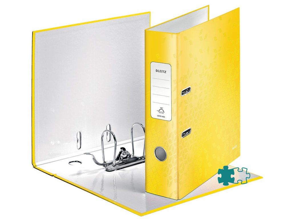 Pákový zakladač rady WOW v žiarivej žltej farbe s dvojfarebným efektom. Unikátna patentovaná mechanika Leitz 180° poskytuje širšie otvorenie, možnosť zakladania väčšieho množstva papierov a o 20 % rýchlejšiu prácu so zakladačom. Vybavený chrbtovým krúžkom, rado zámkom a samolepiacim chrbtovým štítkom, ktorý môže byť v prípade potreby odstránený. Šírka chrbta 8 cm, kapacita 600 listov. Väčšie balenie 10 ks.Dodatočné parametre
