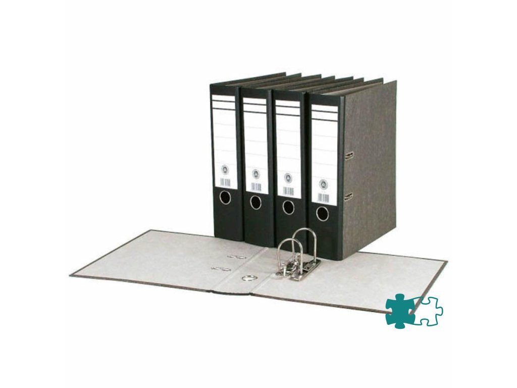 Zakladač so štruktúrovaným papierovým poťahom mramorového vzoru, formát A4. Vybavený rado zámkom, kovovým prítlakom, chrbtovým krúžkom a nalepeným chrbtovým štítkom. Šírka chrbta 7,5 cm. Väčšie balenie: 20 ks. Farba čierna.Chrbát: 7,5 cm