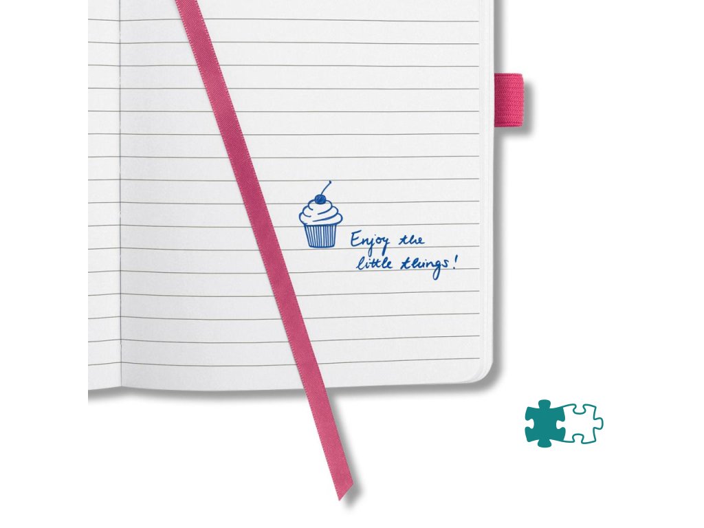 Krásny linajkový zápisník s tvrdým obalom s razbou farebne koordinovanej tlače, s romantickým motívom alebo motívom z prírody sú to, čo vám zabezpečí dovolenkovú náladu aj mimo dovoleniek a súčasne vytvoríte dojem. Gumička, lacetka a pútko na pero vo farbe obalu. Formát A5. Počet strán 174. Farba ružová.Dodatočné parametre