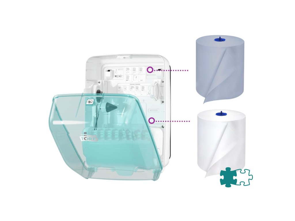 Zásobník na papierové utierky v roliach TORK Performance tyrkysový/biely W6