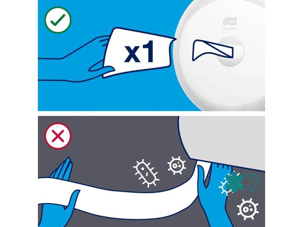 Tork SmartOne® zásobník na toaletný papier v kotúči v dizajne Elevation je moderný a efektívny systém zásobníkov vhodný pre náročné toalety a umyvárne s vysokou návštevnosťou. Dávkovanie po útržkoch pomáha znižovať spotrebu až o 40 % v porovnaní s tradičnými jumbo kotúčovými zásobníkmi.Materiál: plast