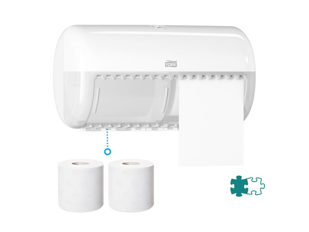 Tork zásobník na toaletný papier v konvenčnom kotúči v dizajne Elevation je vhodný do menej navštevovaných toaliet a umyvární a znižuje údržbu tým, že pojme až dva konvenčné kotúče. Zásobníky Elevation majú praktický a moderný dizajn, ktorý zanecháva v hosťoch dlhodobý dojem.Materiál: plast
