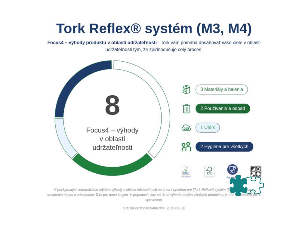Tork® Reflex™ zásobník na jednotlivo dávkované utierky so stredovým odvíjaním je ideálny na utieranie rúk a povrchov pre profesionálne prostredie, navrhnutý tak, aby dokonale dopĺňal váš pracovný postup. Vďaka dávkovaniu po jednom útržku sa dotknete len toho, čo použijete, a vďaka otočnému dávkovaču budete mať prístup k papieru z akéhokoľvek uhla. Tento jednoducho použiteľný, hygienický a odolný systém znižuje spotrebu až o 37 % v porovnaní s Tork® systémom so stredovým odvíjaním.Dodatočné parametre