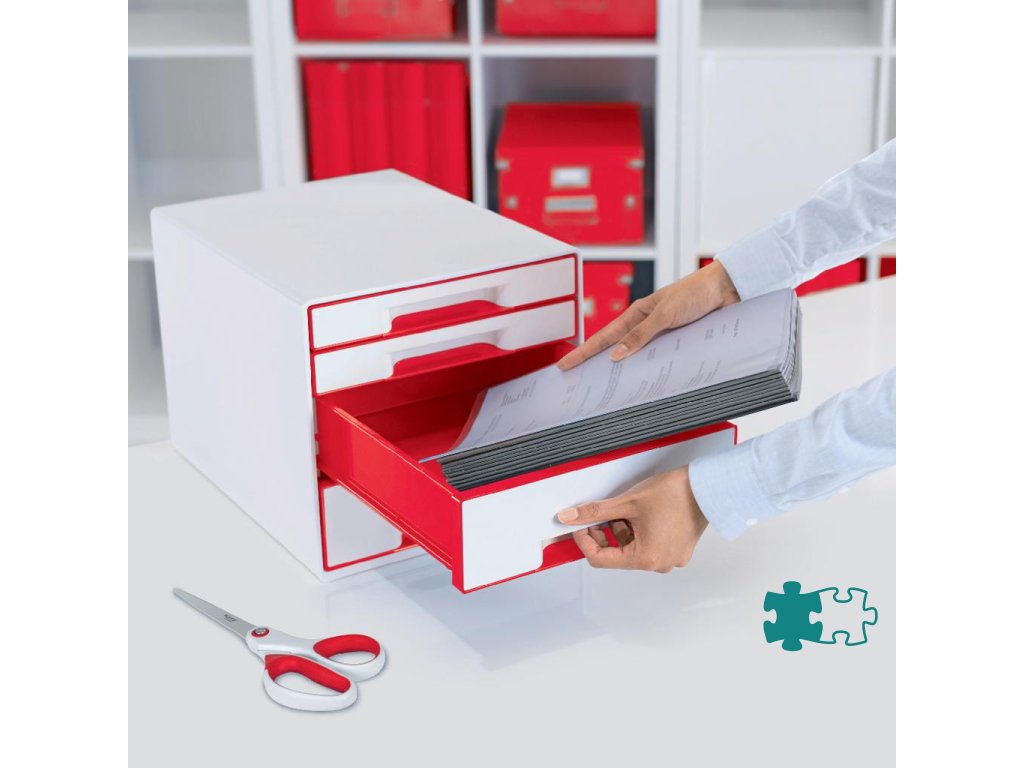 Zásuvkový box Leitz WOW so 4 zásuvkami červený